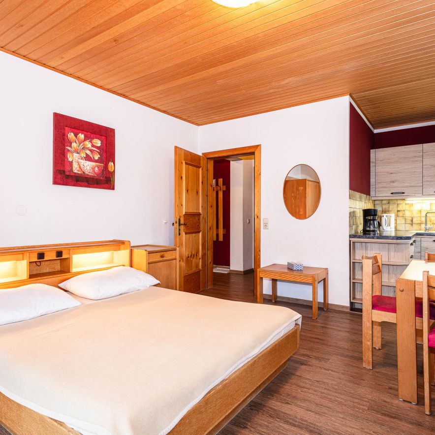 Die Ferienwohnungen sind liebevoll eingerichtet und bieten Platz für bis zu vier Personen. Auch unsere Zimmer sind gemütlich ausgestattet und können je nach Bedarf mit den Ferienwohnungen kombiniert werden.