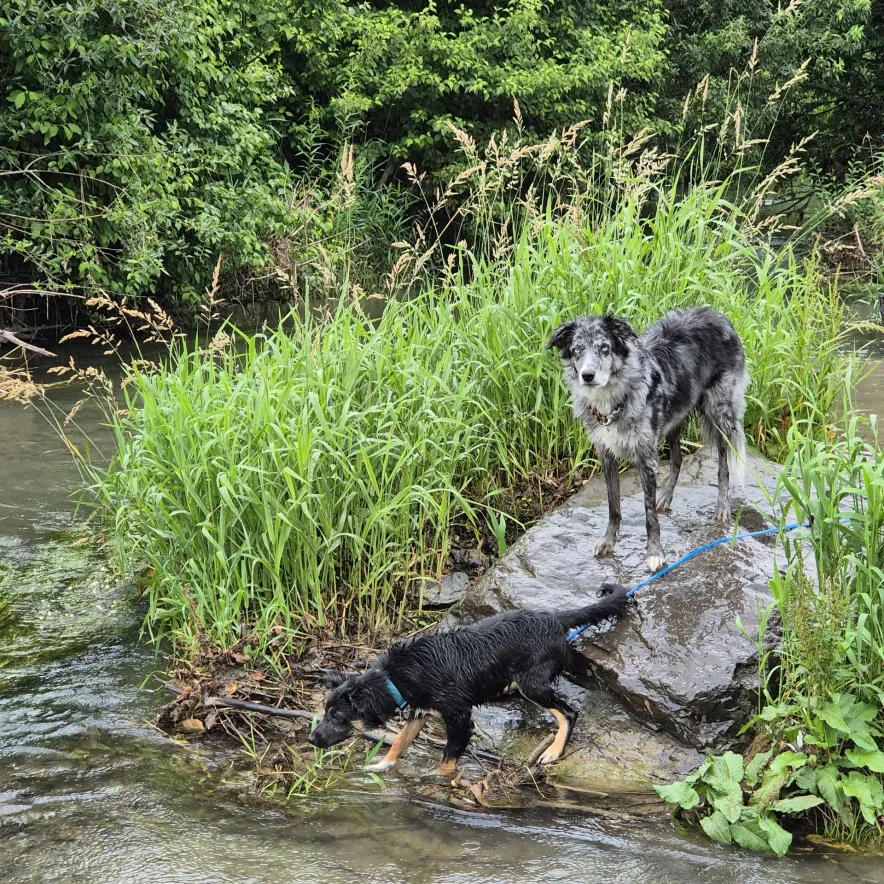 Je nach Hund und Situation finden die Spaziergänge einzeln oder in kleinen, passenden Gruppen statt.